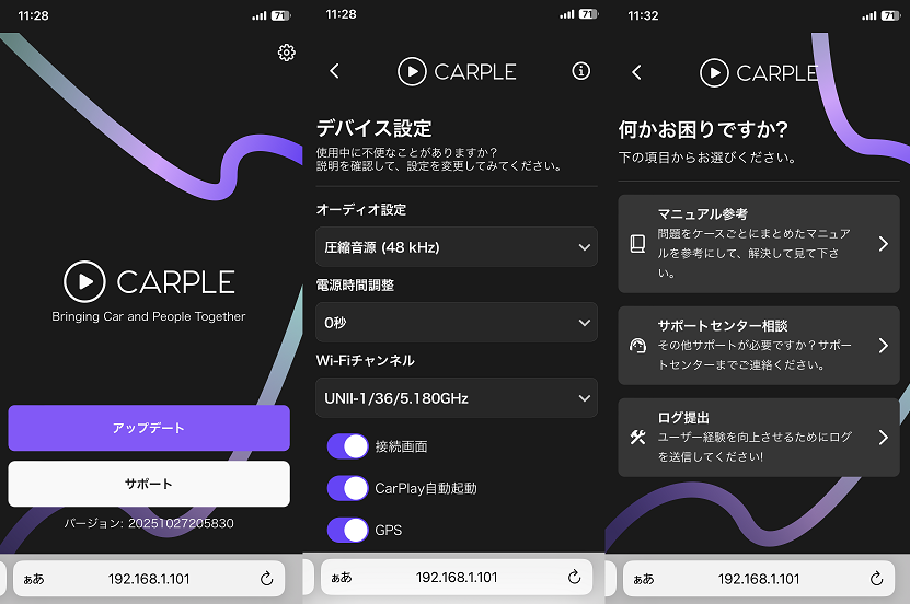 デバイス設定:ウェブアプリの右上の⚙マークから、デバイスの設定が可能です。