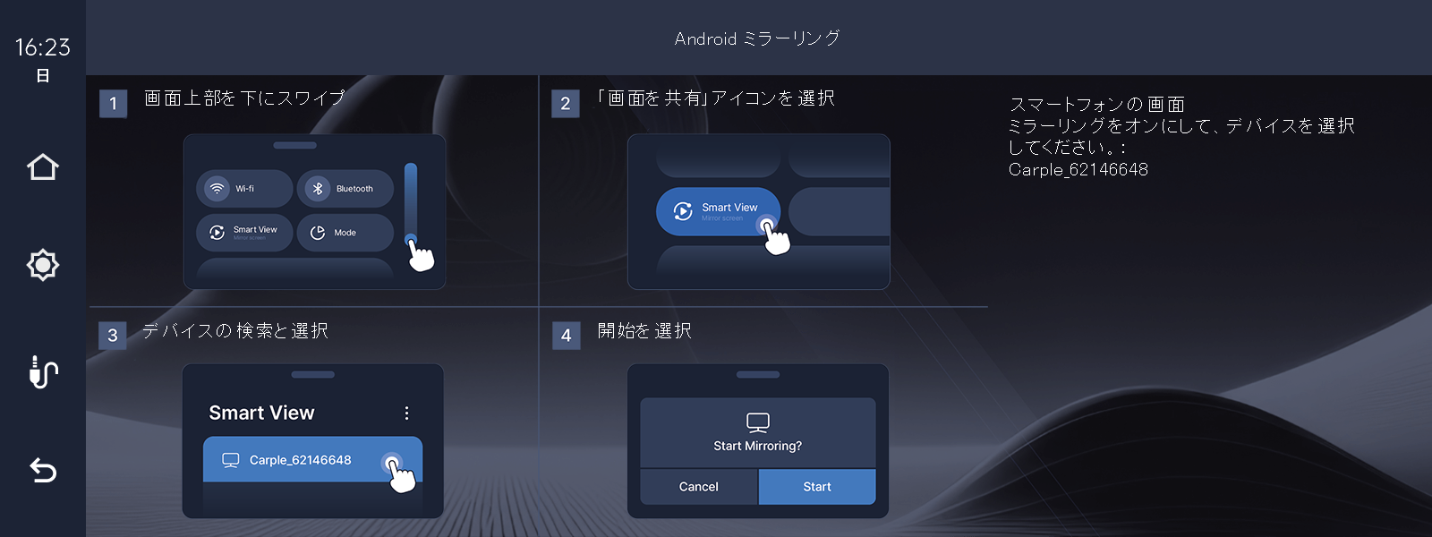 2-2.Androidミラーリング接続方法 (ファームウェアが「v 1.1.XX」の場合)