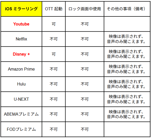 Carple4Kモニターは、ミラーリング機能を通じて一部の映像サービスをご利用いただけます。ただし、アプリやサービスによってはミラーリングに対応していない場合があります。