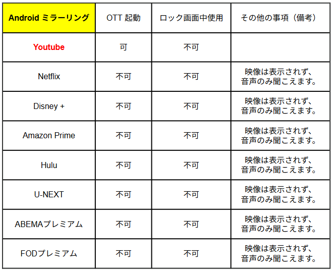 2. Android ミラーリング 対応リスト
